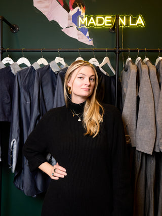 Handmade in small batches in our Los Angeles facility, each piece is thoughtfully designed and constructed using locally sourced, ethical materials. We believe in full transparency, from the designer’s sketch to the hands that bring each garment to life.